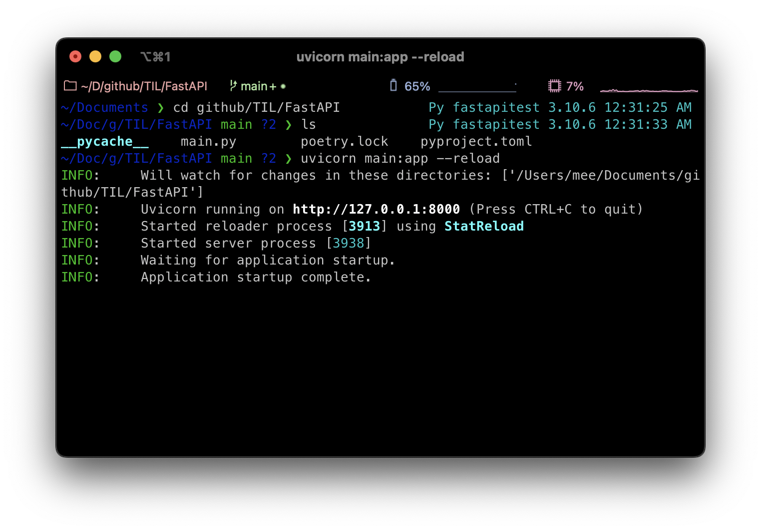 peotry로 fastapi와 uvicorn을 설치해줬다.