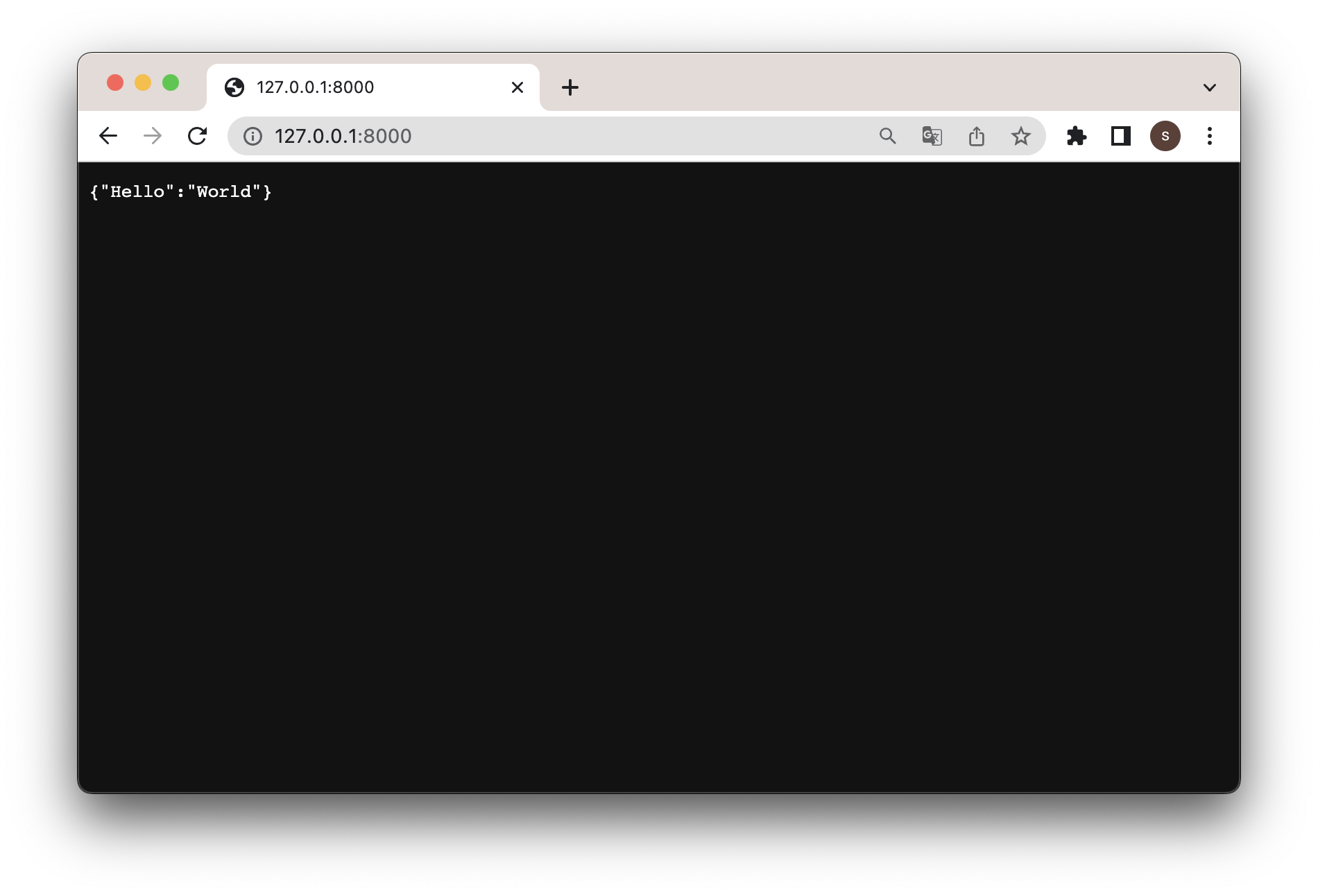 친절히 알려준 대로 http://127.0.0.1:8000 로 들어가면 코드에 작성한 대로 출력되는 걸 볼 수 있다.