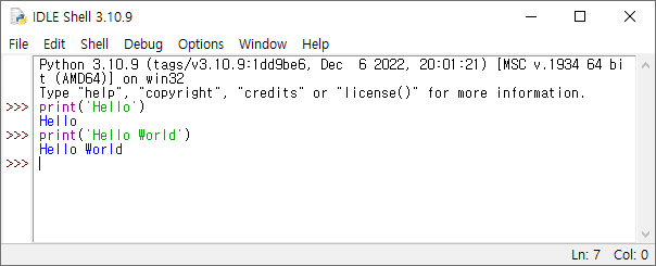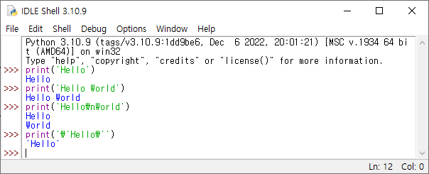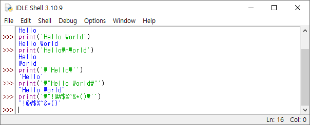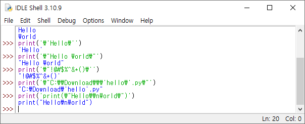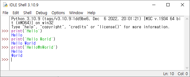 ▶출력 print("Hello\nWorld")