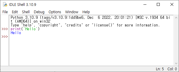 ▶출력 'Hello'