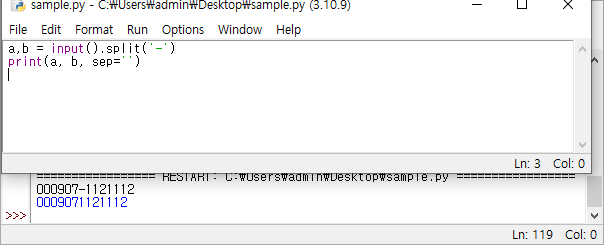 주민번호를 입력받아 형태를 바꿔 출력해보자.