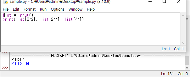 6자리의 연월일(YYMMDD)을 입력받아 나누어 출력해보자.