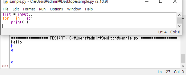 입력받은 단어의 각 문자를 한 줄에 한 문자씩 분리해 출력한다.