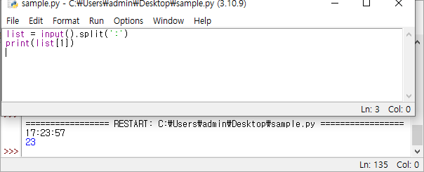 시:분:초 형식으로 시간이 입력될 때 분만 출력해보자.