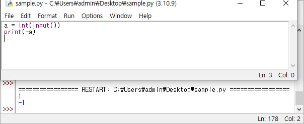 6032 : [기초-산술연산] 정수 1개 입력받아 부호 바꾸기