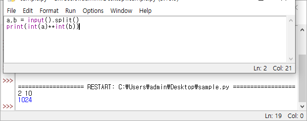 6038 : [기초-산술연산] 정수 2개 입력받아 거듭제곱 계산하기