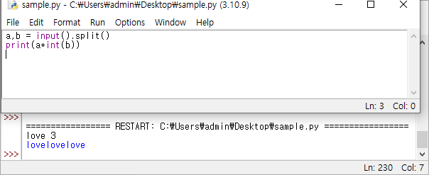 반복 횟수와 문장을 입력받아 여러 번 출력해보자.