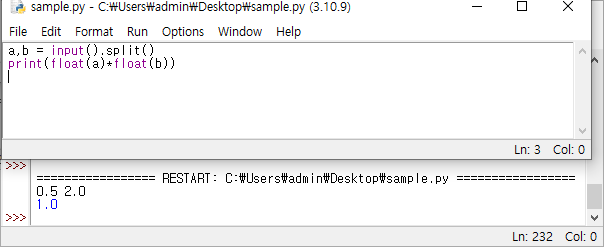 6035 : [기초-산술연산] 실수 2개 입력받아 곱 계산하기