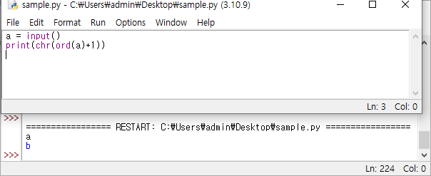 6033 : [기초-산술연산] 문자 1개 입력받아 다음 문자 출력하기