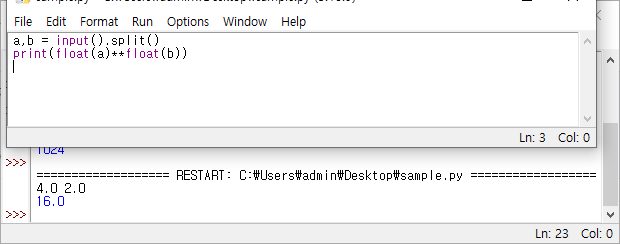 6039 : [기초-산술연산] 실수 2개 입력받아 거듭제곱 계산하기