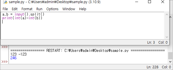 정수 2개(a, b)를 입력받아 a에서 b를 뺀 차를 출력하는 프로그램을 작성해보자.