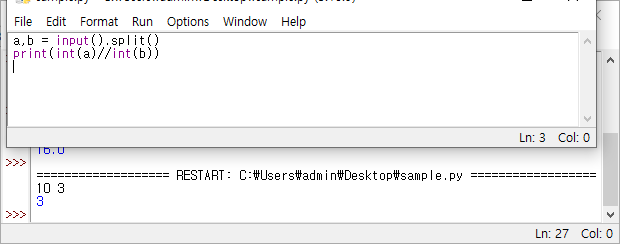 6040 : [기초-산술연산] 정수 2개 입력받아 나눈 몫 계산하기