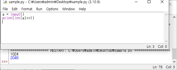 6046: [기초-비트시프트연산] 정수 1개 입력받아 2배 곱해 출력하기