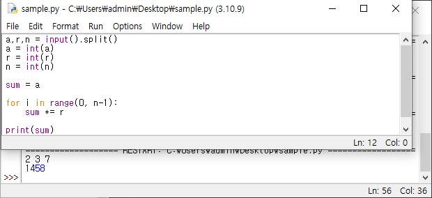 시작 값(a), 등비(r), 몇 번째인지를 나타내는 정수(n)가 입력될 때
