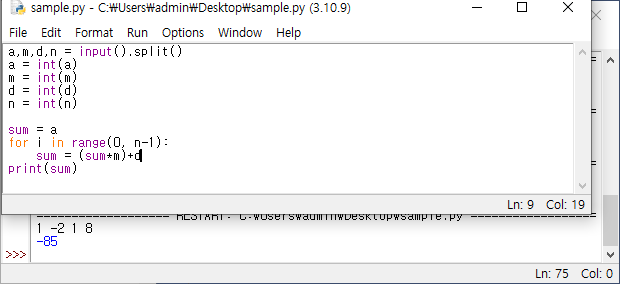 시작 값(a), 등차(d), 몇 번째인지를 나타내는 정수(n)가 입력될 때