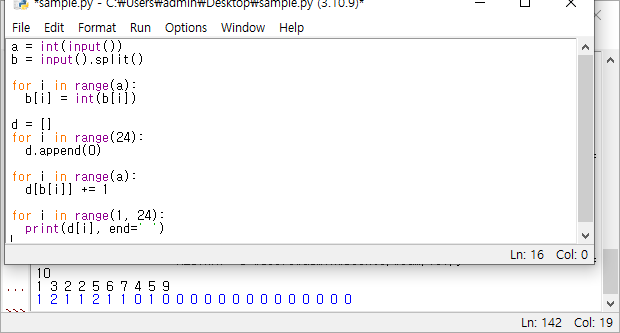 ▶출력 1 2 1 1 2 1 1 0 1 0 0 0 0 0 0 0 0 0 0 0 0 0 0
