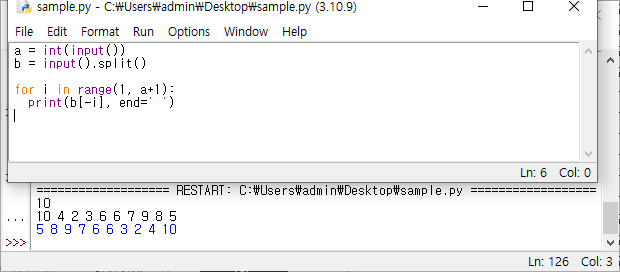▶출력 5 8 9 7 6 6 3 2 4 10