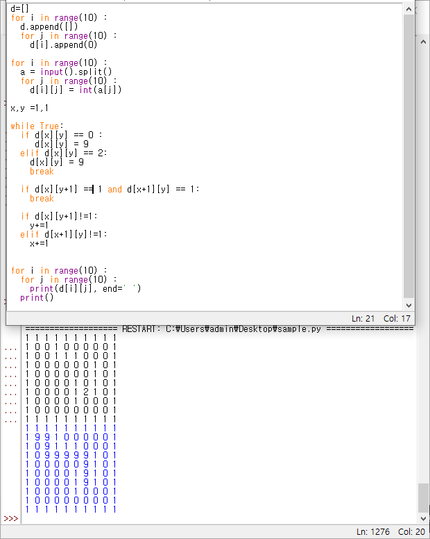 elif d[x+1][y]!=1: