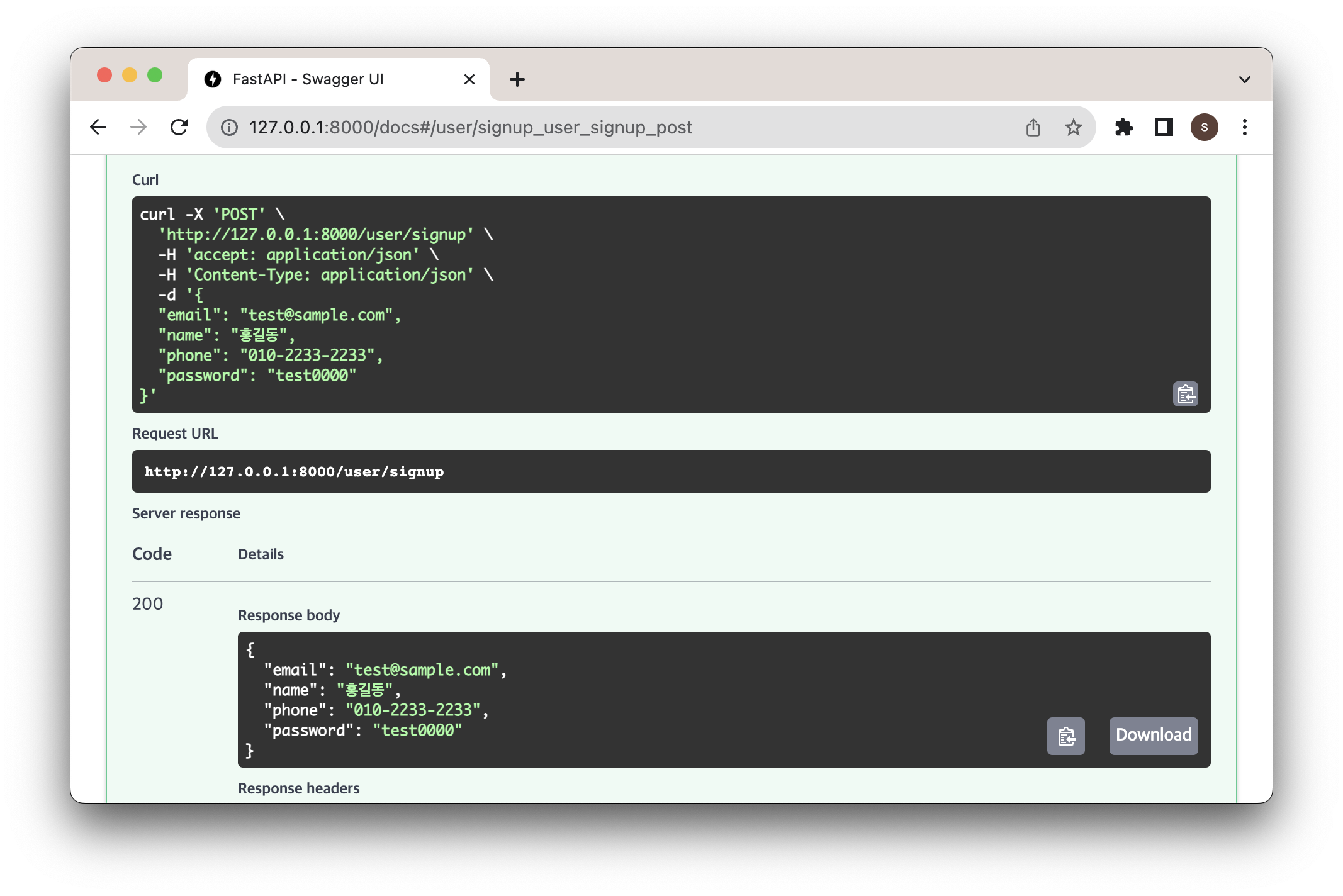 그럼 일단 전달받은 형식을 통해 회원가입을 진행해본다.