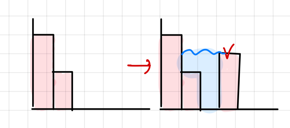 3. 현재 바의 높이가 이전 바의 높이보다 높다면 (변곡점) 이전에 부터 고인 물의 양 구하기