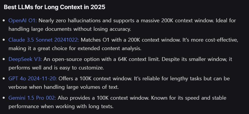 long context 부문에서 있기 있는 모델들도 있고,