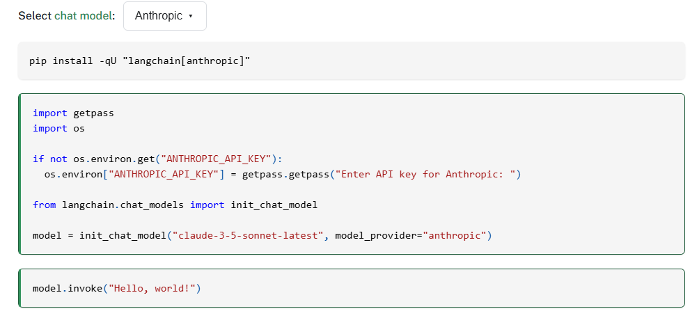 pip install langchain langchain-openai langchain-anthropic