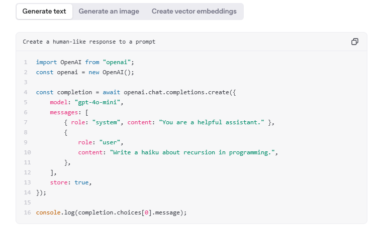 openAI는 chat.completions.create 을 불러야 하고 프롬프트도 content에 담아줘야 한다.