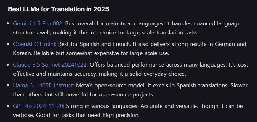 translation부문에서 인기 있는 모델들도 있다.