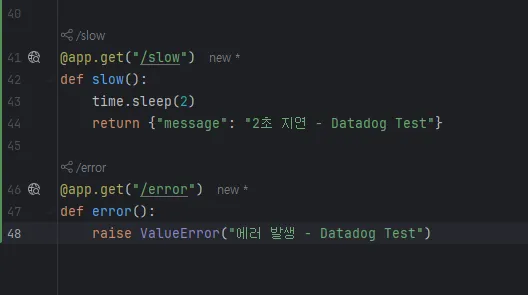 APM 의 성능 추적을 위해 두가지 엔드포인트도 임의로 만들어줬다.