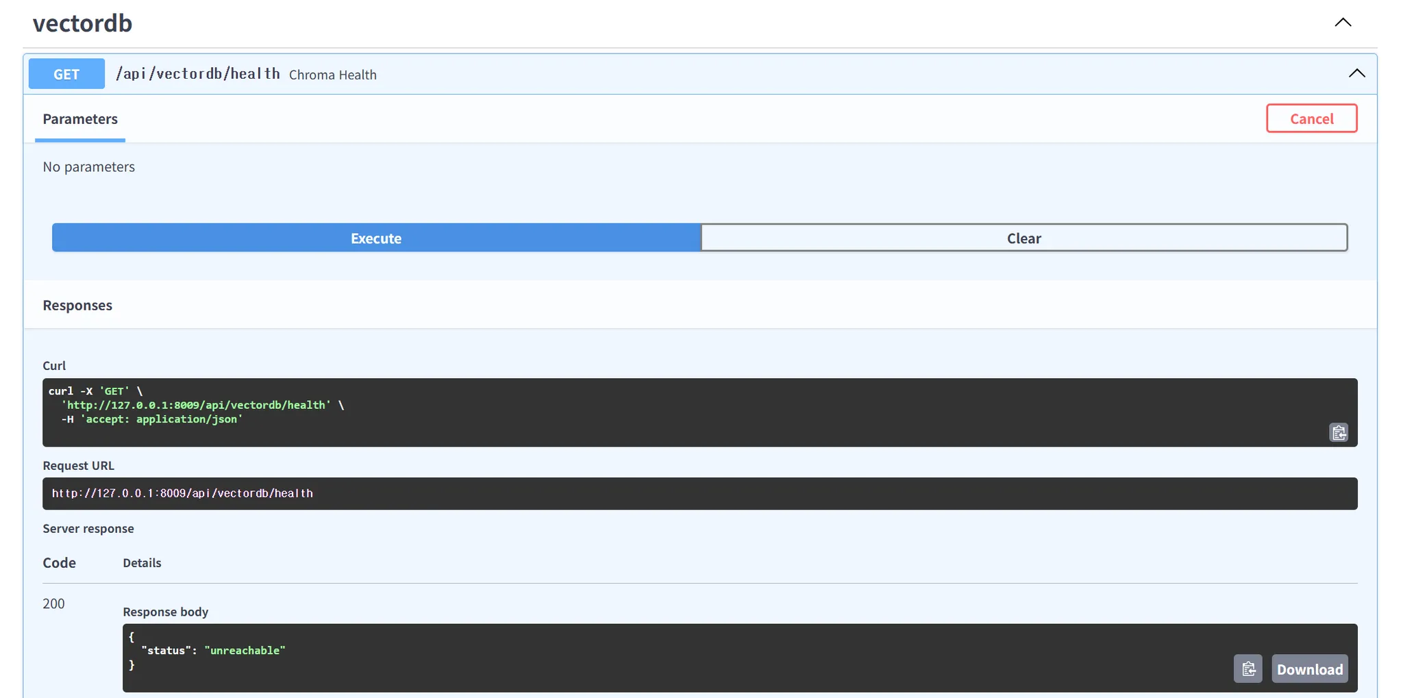chromadb가 실행되지 않는 상황에서 health check를 해봤다.