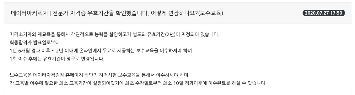2년이 되기 전에 보수교육을 받아야 영구 자격증이 된다고 하니 꼭 잊지말고 듣자!