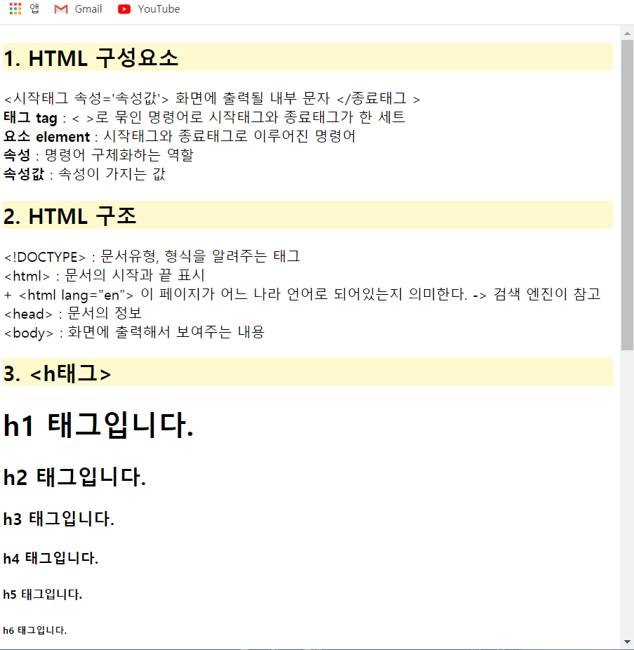 - HTML 기본 구조와 구성요소 등을 공부함