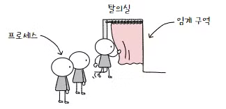 : 여러 프로세스/쓰레드가 공동으로 사용하면 안되는 공유 자원의 일부 영역